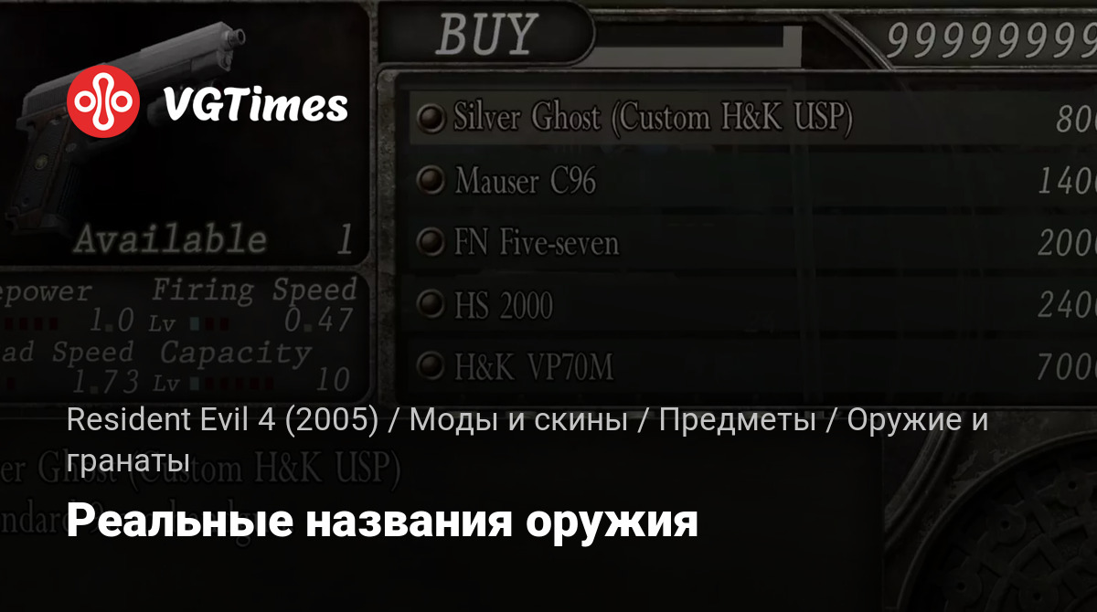 Этот мод заменяет вымышленные названия оружия на настоящие; как в инвентаре, так и в меню торговца, совместим со всеми языками.