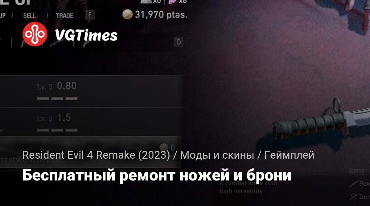 Этот мод позволяет бесплатно ремонтировать ножи и доспехи.