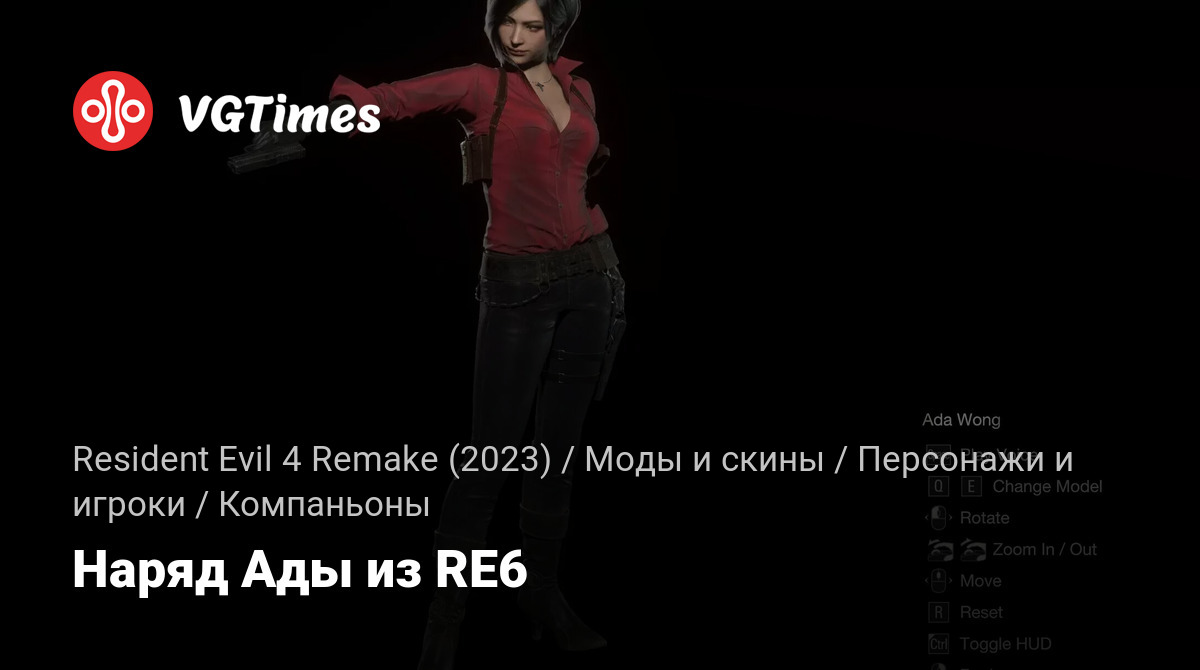 Заменяет стандартный наряд Ады, на её костюм из RE6.