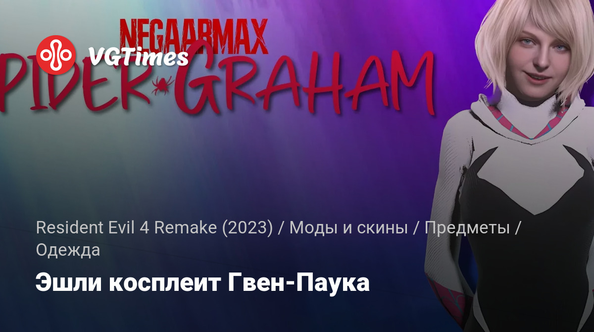 Адаптация модели Паука-Гвен из Fortnite с улучшениями текстур и использованием волос Джилл с некоторыми корректировками. Он заменяет «Романтический» костюм Эшли, а при выборе костюма также было изменено имя на «Паук-Грэм».