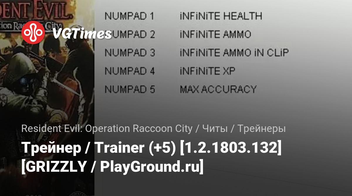 Gry Resident Evil: Operation Raccoon City Pliki Trenery Трейнер / Trainer (+5) [1.2.1803.132] [GRIZZLY / PlayGround.ru]