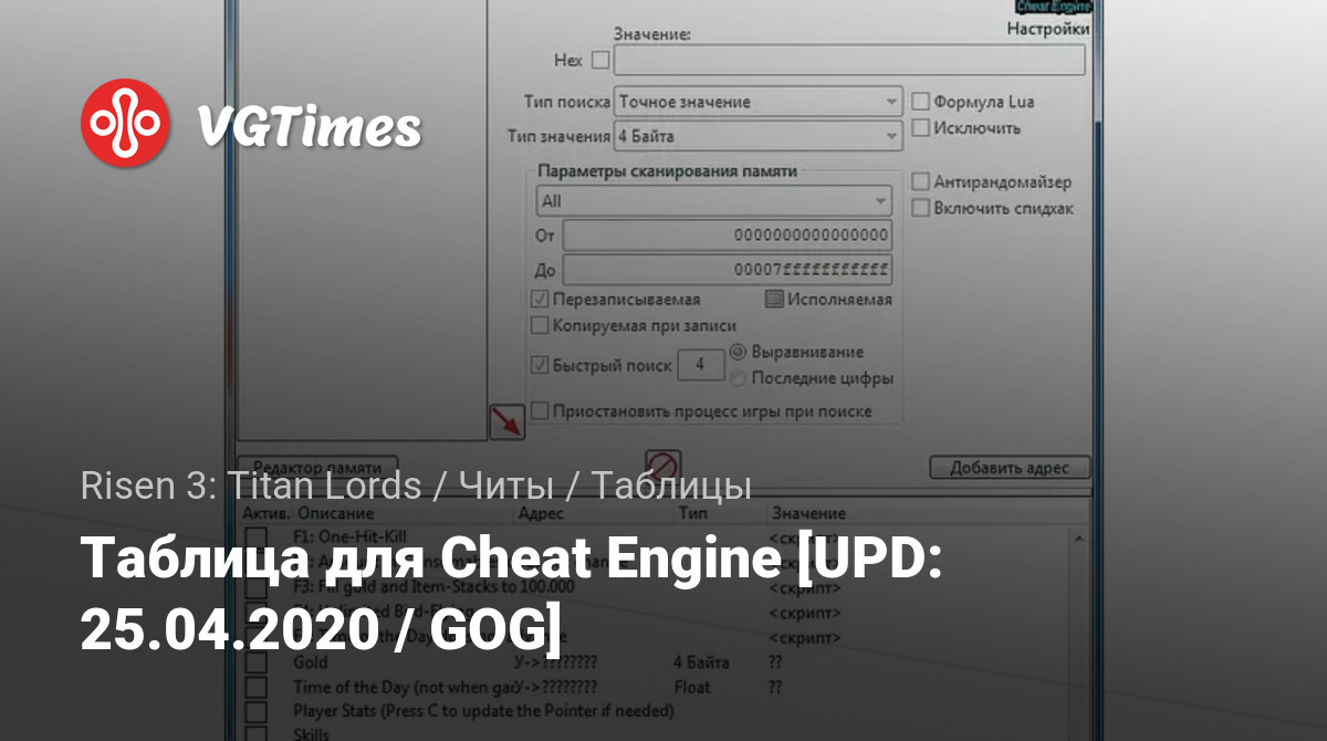 Таблица для Cheat Engine [UPD: 25.04.2020 / GOG]