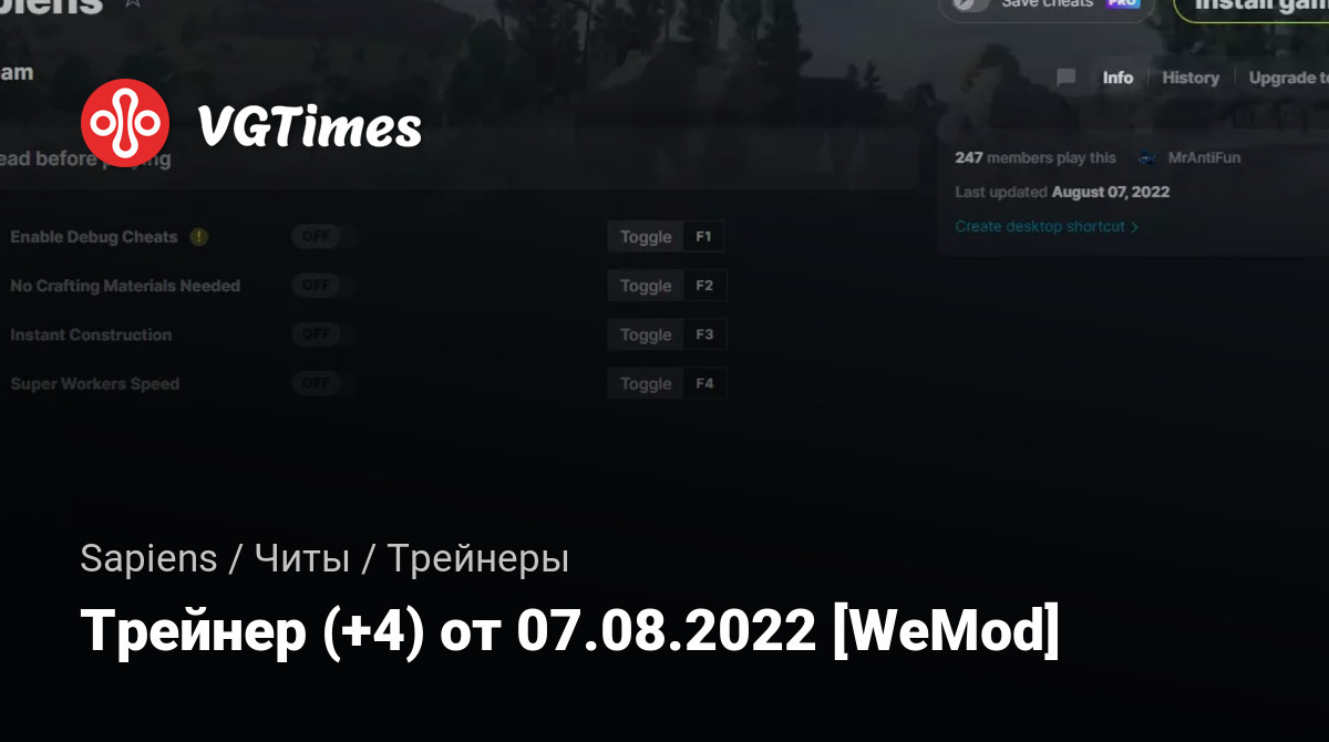 Для использования трейнера необходима установка системы WeMod (требуется онлайн подключение).