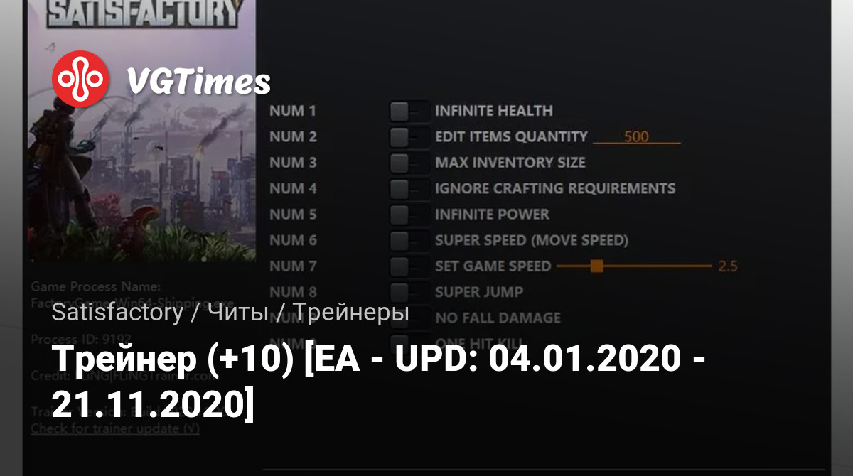 • Satisfactory — Трейнер (+10) [EA - UPD: 04.01.2020 - 21.11.2020]