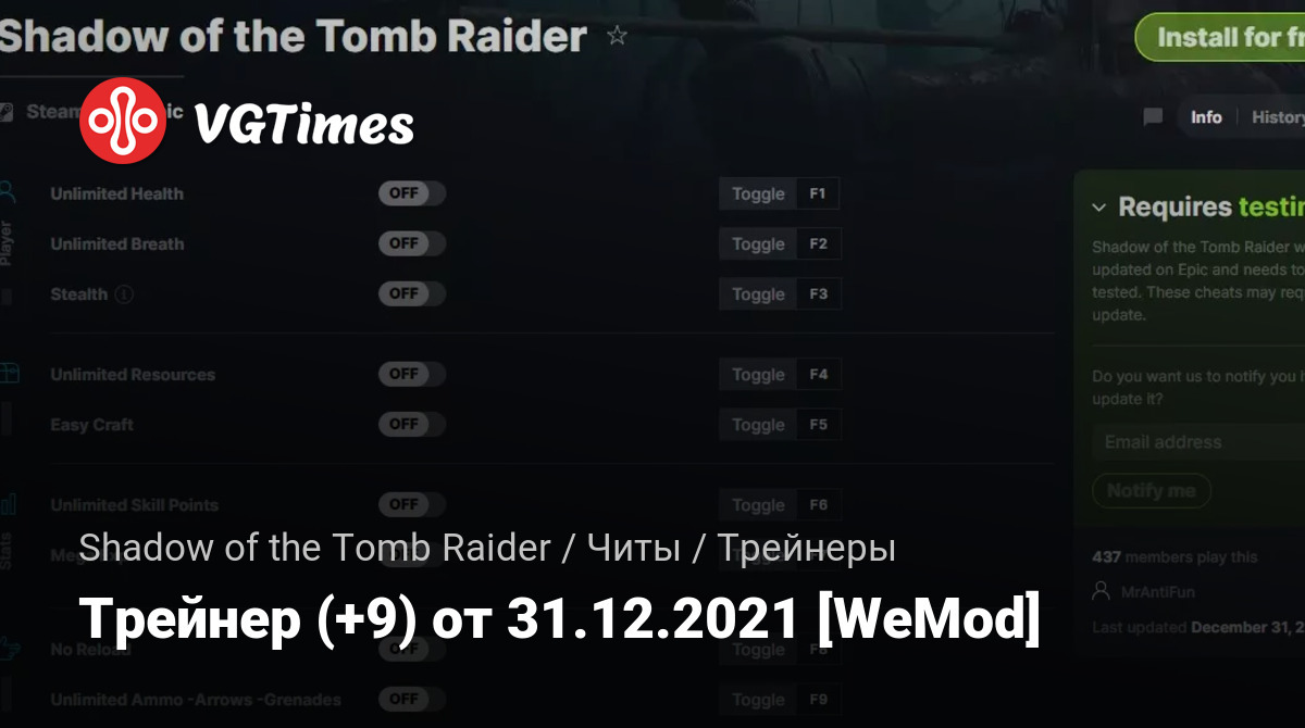 Для использования трейнера необходима установка системы WeMod (требуется онлайн подключение).