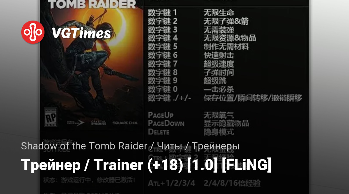 • Shadow of the Tomb Raider — Трейнер / Trainer (+18) [1.0] [FLiNG]