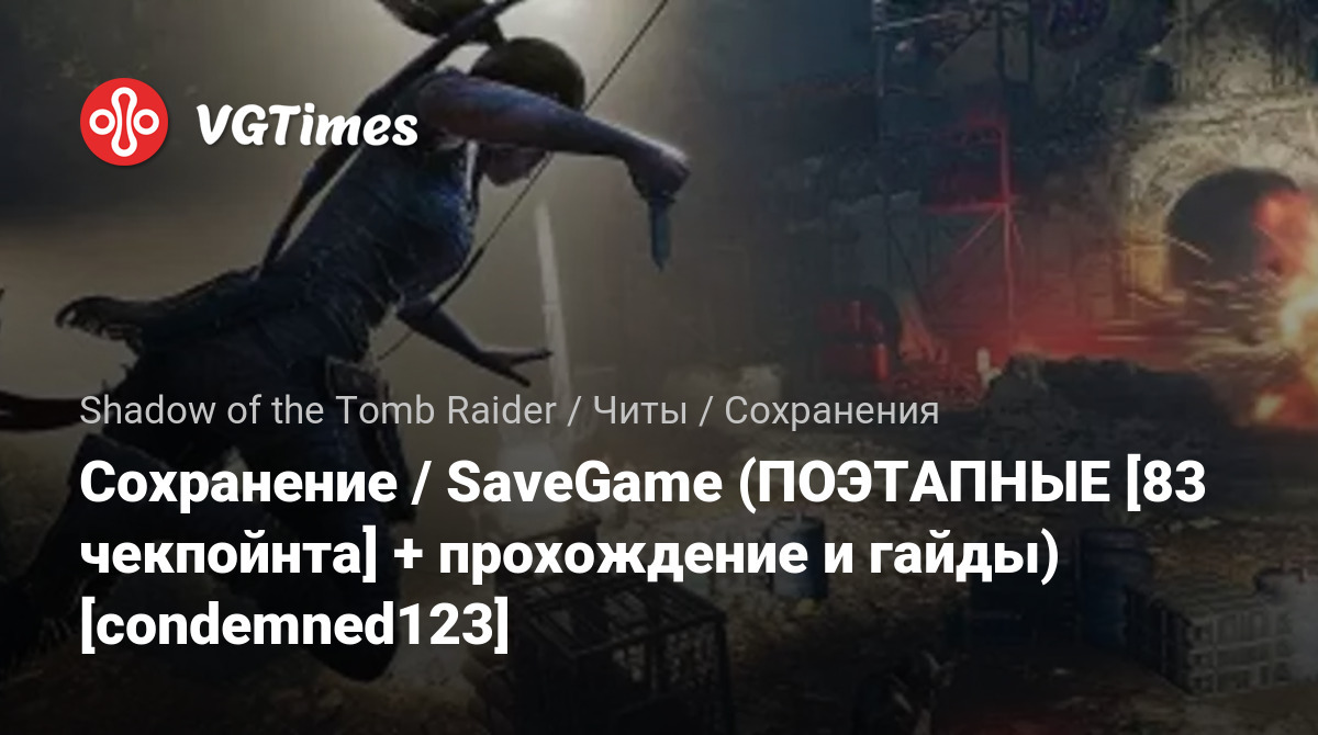В архиве "save_sottr_condemned123.7z" поэтапные сохранки игры Shadow of the Tomb Raider