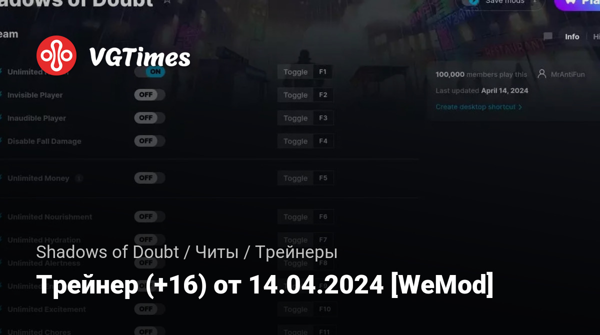 • Shadows of Doubt — Трейнер (+16) от 14.04.2024 [WeMod]