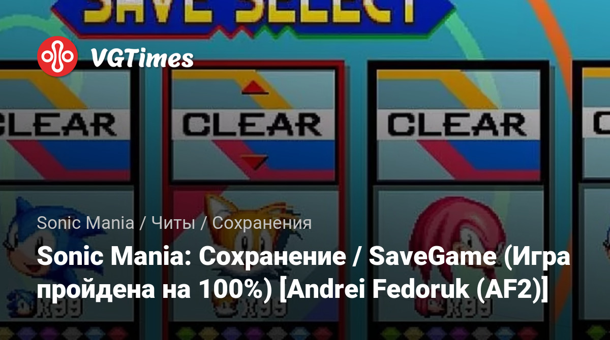 Sonic Mania: Cохранение / SaveGame (Игра пройдена на 100%) [Andrei Fedoruk (AF2)]