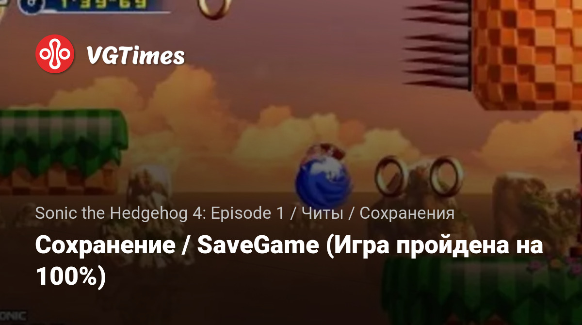 Сохранение для игры Sonic the Hedgehog 4 Episode I (100%-ое прохождение)