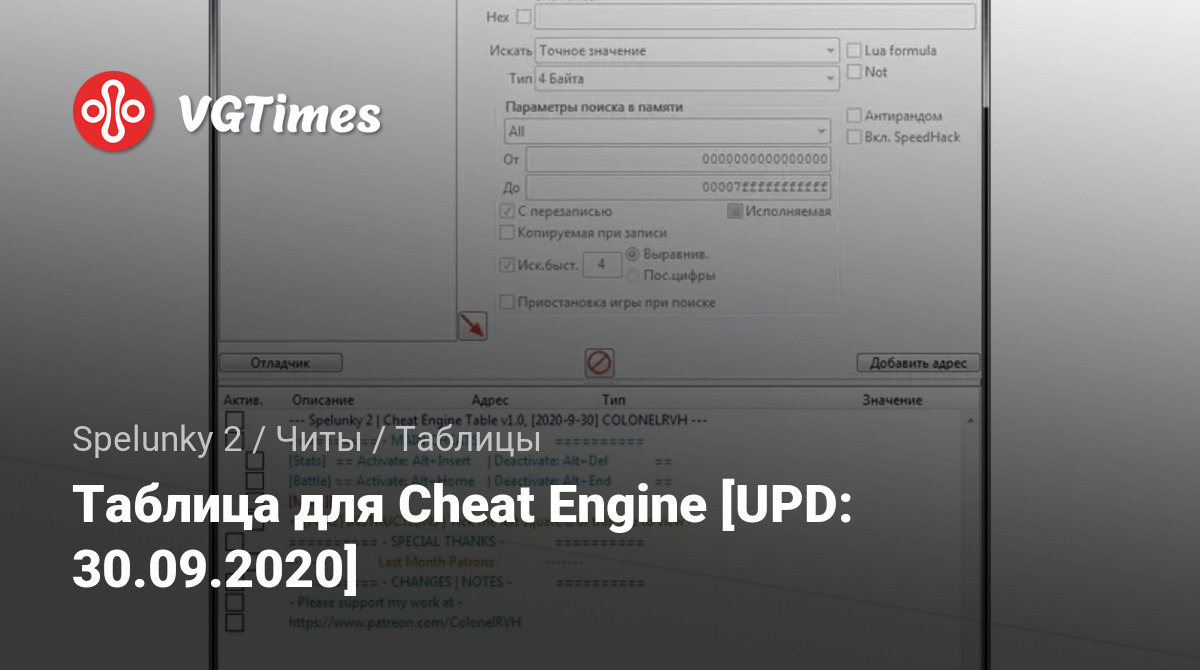 Таблица для Cheat Engine [UPD: 30.09.2020]