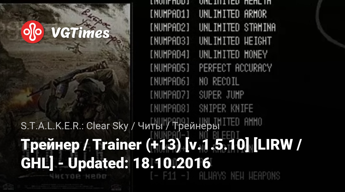Gry S.T.A.L.K.E.R.: Clear Sky Pliki Trenery Трейнер / Trainer (+13) [v.1.5.10] [LIRW / GHL] - Updated: 18.10.2016
