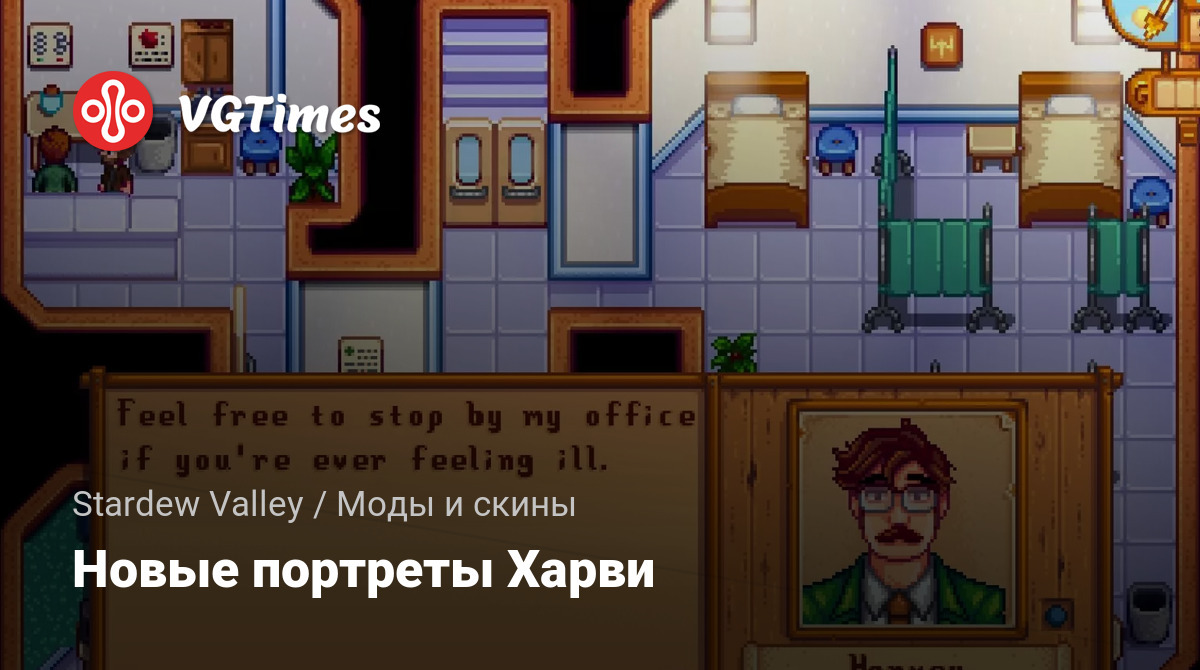 Этот мод дает Харви шикарный новый вид. Мне действительно нравится художественный стиль Stardew Valley, но как художник я всегда чувствую необходимость воссоздать вещи в своем собственном стиле. Поэтому я попытался переделать портрет Харви таким образом, чтобы он все еще сохранял ощущение оригинального художественного стиля, в то же время заставляя его выглядеть немного старше и немного отражать мой собственный художественный стиль.
