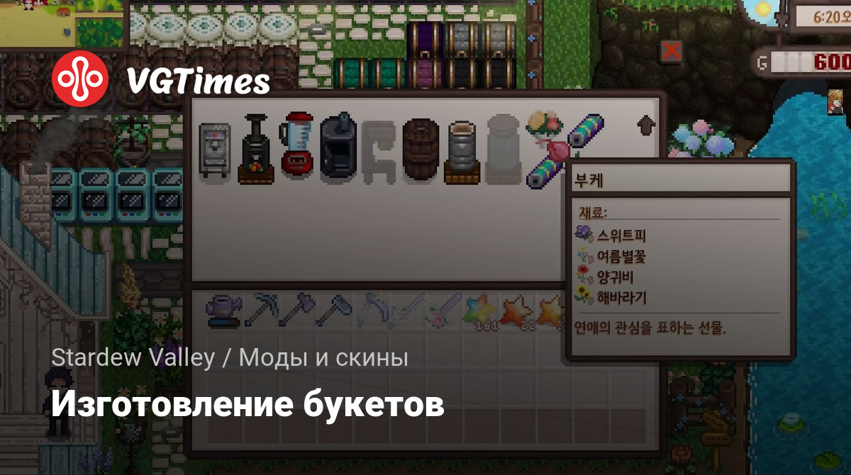 Этот мод позволит создавать вам различные букеты. Набор меняется вместе с сезоном.