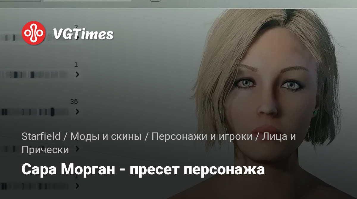 Первая версия молодой Сары Морган в качестве игрового персонажа. Включены сохранение файла и изображений для создания персонажа.