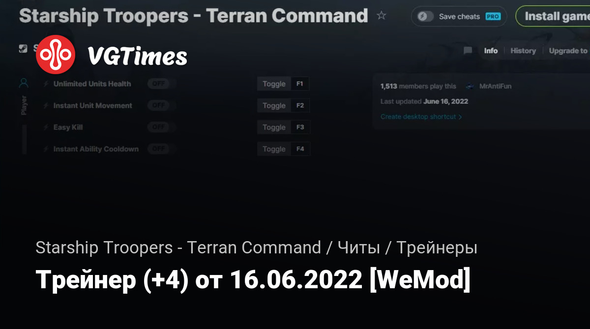 • Starship Troopers - Terran Command — Трейнер (+4) от 16.06.2022 [WeMod]