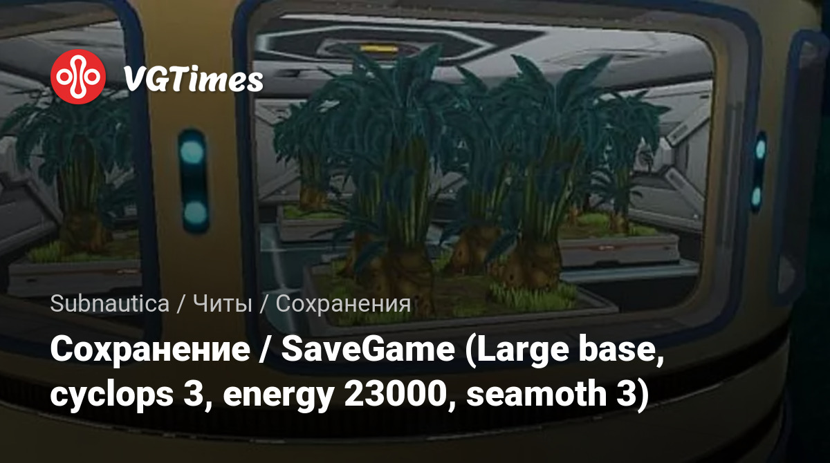 Subnautica: Сохранение/SaveGame (large base, cyclops 3, energy 23000 seamoth 3) друзья ето новое сохранение удачной игры я старался