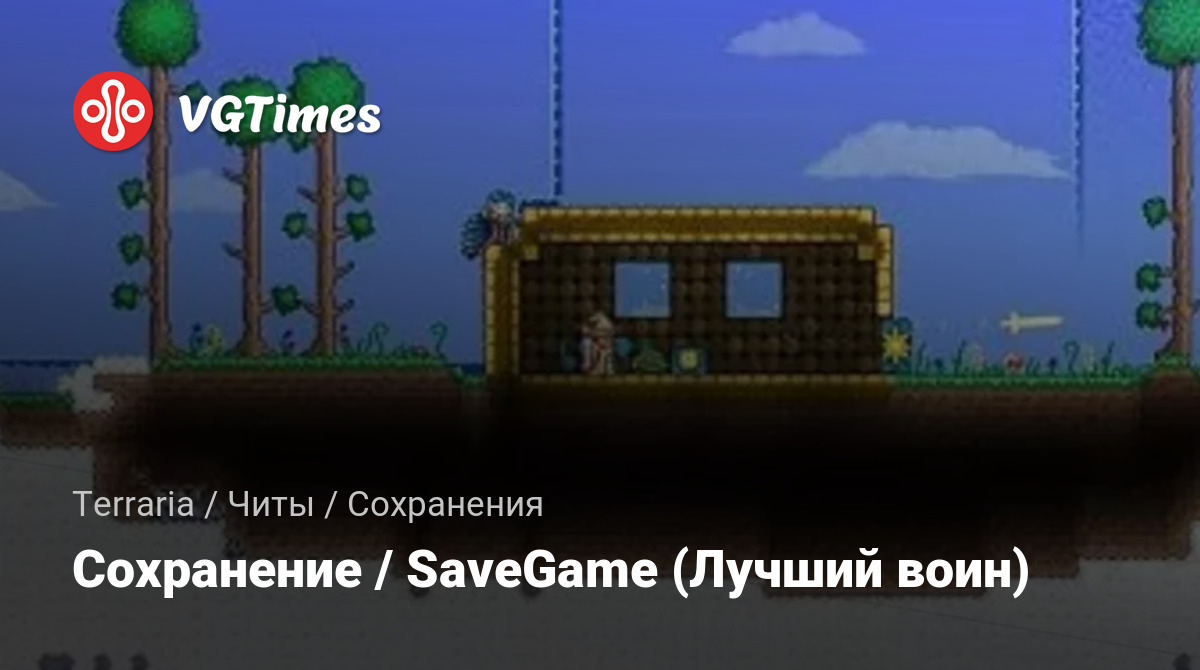 В этом сохранении персонаж по имени "Воин" без русификатора будет выглядить примерно так — Aoay, персонаж создавался на версии 1.3.3.3 использовать его можно С ВЕРСИИ 1.3 скриншоты скину если попросите в комментариях. Удачной игры!