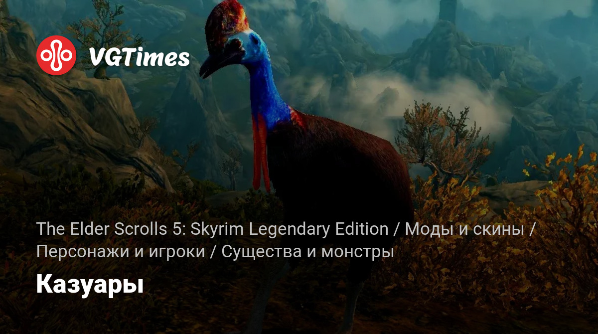 Этот мод добавляет Казуаров в Скайрим. Чаще всего встречаются в западной части мира. Вы можете повстречать три варианта этих птиц: взрослые, молодые и птенцы. В качестве добычи их шкуру можно использовать для стрел, а мясо в еду. Также, их яйца имеют большую ценность.
