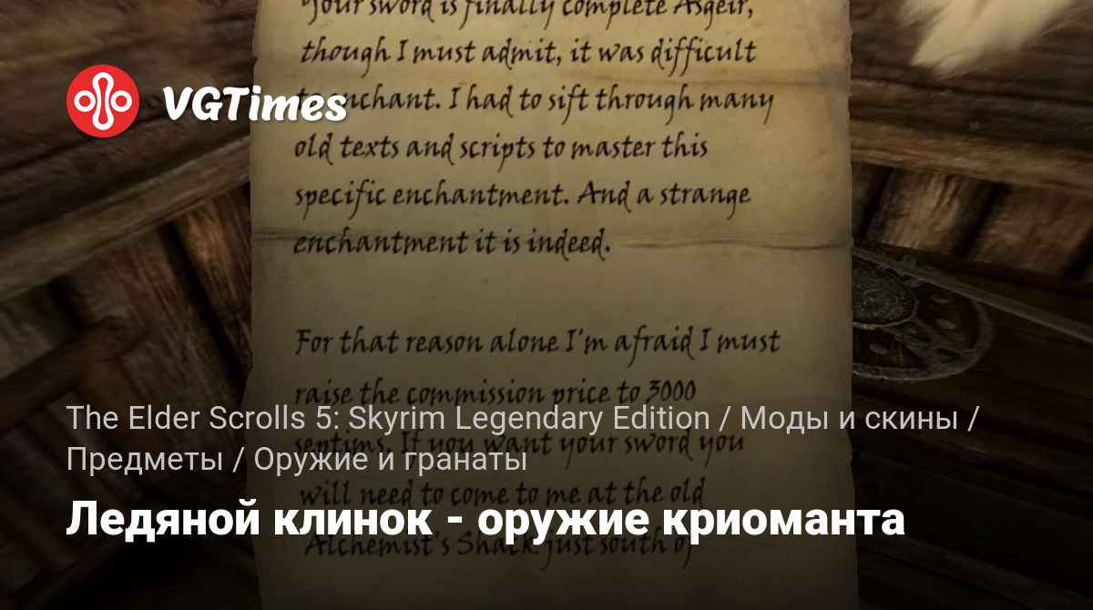 Ледяной клинок — меч древнего норда, который был передан семье Снегобедов. Вскоре после того, как Асгейр унаследовал клинок, его отец рассказал ему историю о Ледяном Драконе Джунлиздове и о том, как древние нордские друиды сумели использовать его туум, чтобы заколдовать старый клинок, позволяя ему заморозить любого при ударе. В восторге от этой истории, Асгейр отправился на поиски кого-то, кто мог бы снова зачаровать Ледяной клинок этой силой и ни перед чем не остановился бы. Вы можете начать квест, зайдя в Рифтен и войдя в поместье Снегоходов. В одной из спален вы найдете записку, которая приведет вас к Ледяному Клинку.