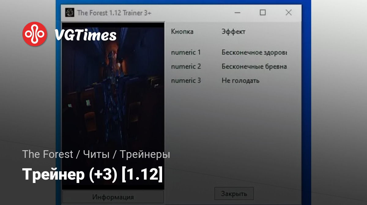 Трейнер работает только на версии 1.12, и только на процессе игры TheForest.exe (Взято из инструкции трейнера).