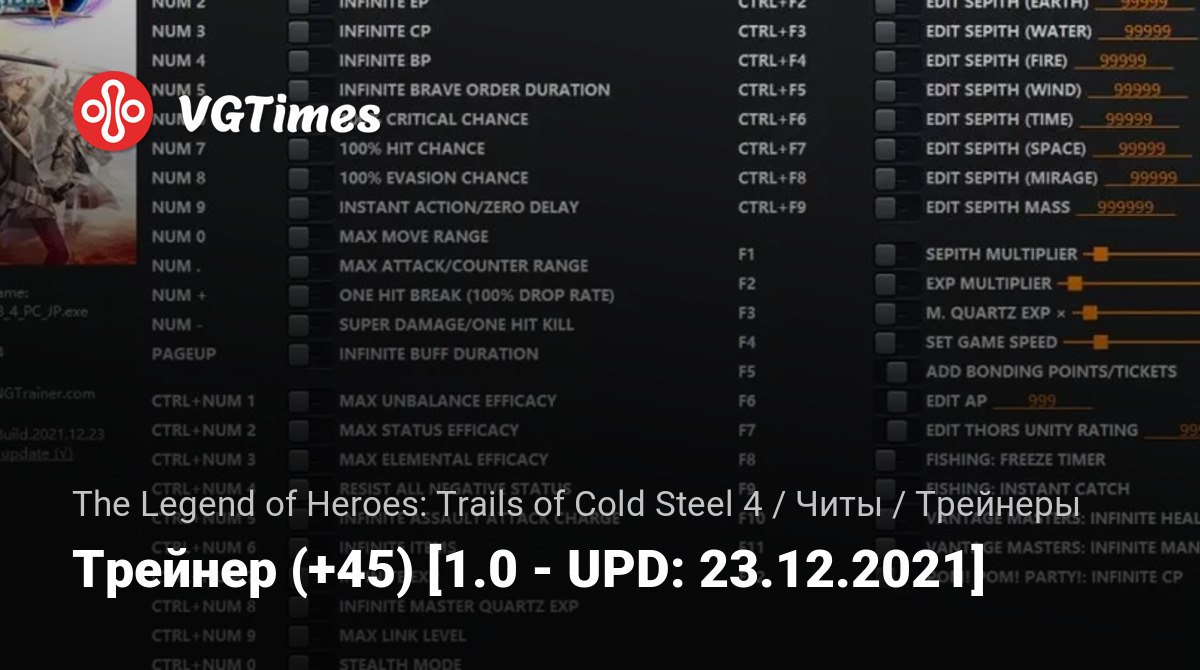 • The Legend of Heroes: Trails of Cold Steel 4 — Трейнер (+45) [1.0 - UPD: 23.12.2021]
