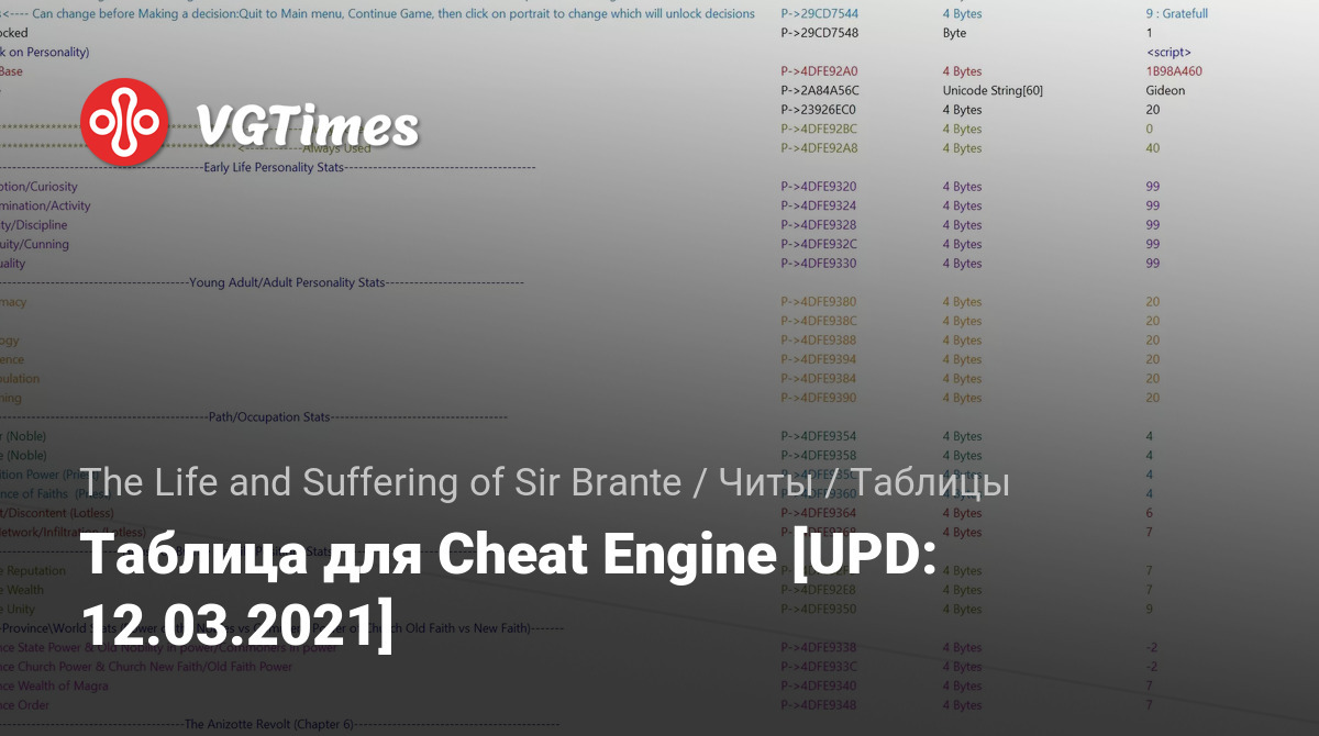 Таблица для Cheat Engine [UPD: 12.03.2021]