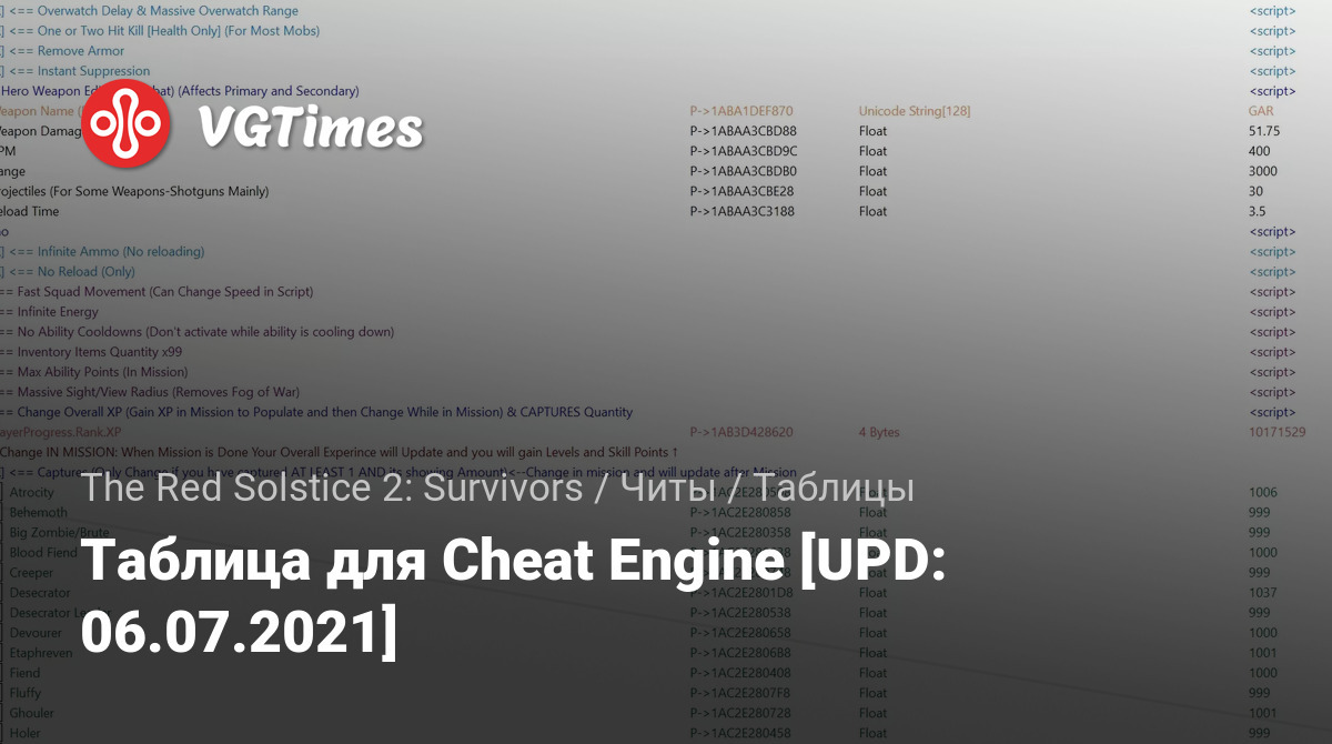 Gry The Red Solstice 2: Survivors Pliki Tabele Таблица для Cheat Engine [UPD: 06.07.2021]