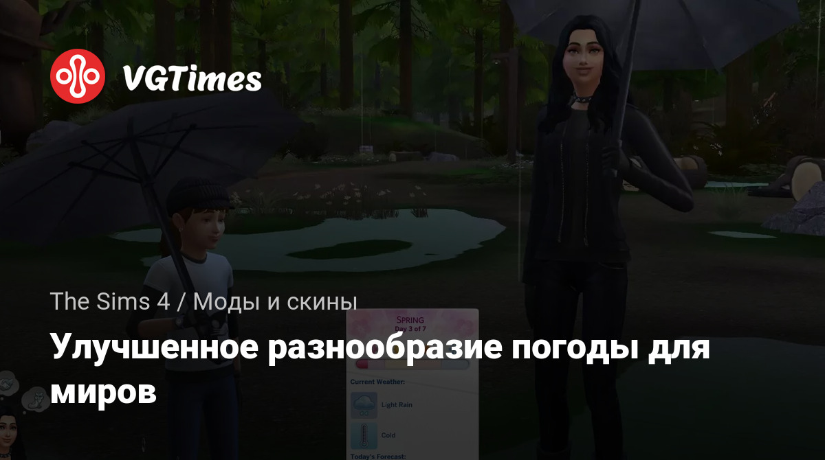 Мод добавляет в Sims 4 погодное разнообразие. Если быть точнее, то он изменяет температуру и погоду в каждом игровом мире (за исключением Ньюкреста). Цель такой перемены заключается в том, чтобы все миры были особенными и уникальными.
