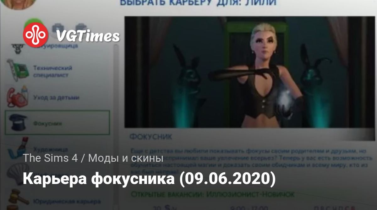 И хочу вам представить мою первую тестовую карьеру Фокусника! (Я переписала все ступени из Sims 3, а не придумала сама, но тем не менее на то она и тестовая карьера, к тому же, мне кажется, что подобной карьеры всё равно не хватает в игре)