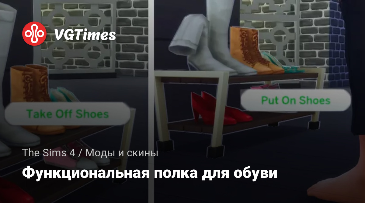 Вам хотелось бы, чтобы ваши персонажи имели возможность снять обувь в помещении? С этим модом вопрос будет решен! Просто скачайте его, и игровые полочки для обуви станут функциональны! Ваши персонажи смогут разуться и не заносить в дом грязь после дождя или снегопада. И пусть ваши персонажи не упустят шанса пощеголять модными носочками!