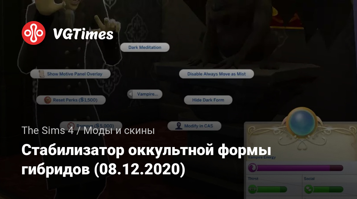 Вас раздражало что гибриды не могли нормально функционировать в игре? Они ломали и персонажей, и само сохранение? Тогда вам поможет этот мод, который решит многие проблемы, с которыми сталкиваются ваши персонажи-гибриды в процессе игры. Теперь вы можете безопасно играть за них, не опасаясь, что игра случайно вылетит. Вы можете уверенно переносить своих гибридов в CAS и сохранять их в своей галерее, не переживая, что игра удалит их оккультные формы. Кроме того, вы спокойно можете менять маскировку пришельцев и хвост у русалок. Персонаж должен появиться в режиме жизни хотя бы один раз, чтобы включить эту защиту.
