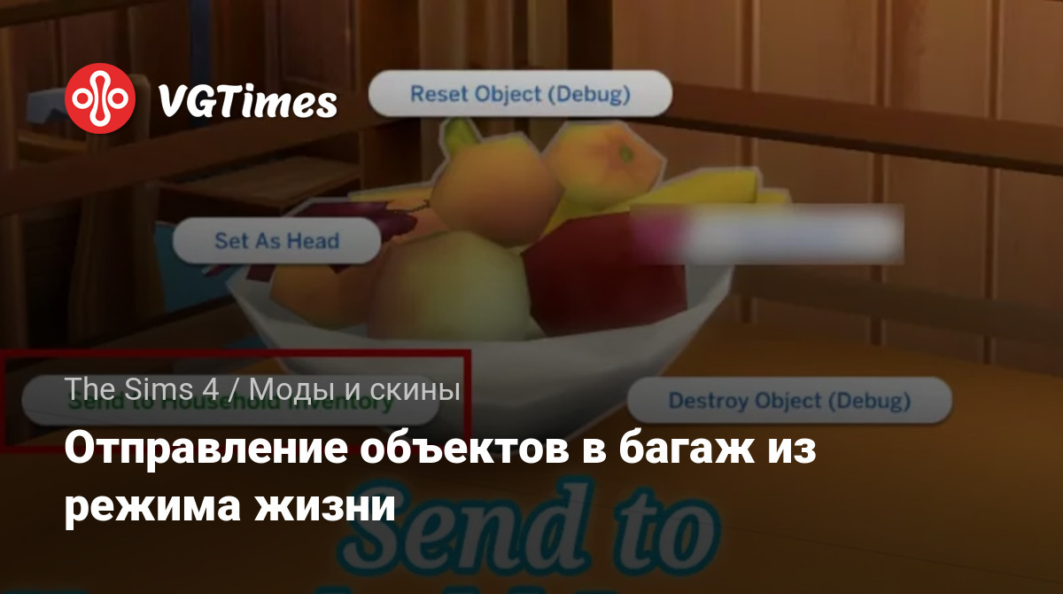 Для работы мода введите код разработчика (Testingcheats true), затем кликните по объекту с зажатым Shift и выберите опцию "Переместить в багаж".