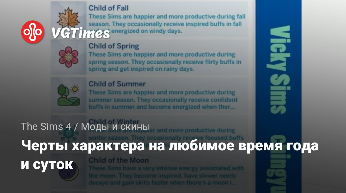 Теперь у ваших персонажей появится любимое время года, а также любимое время суток, которые будут влиять на их настроение и добавят новые мудлеты!