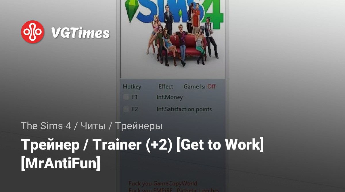 • The Sims 4 — Трейнер / Trainer (+2) [Get to Work] [MrAntiFun]