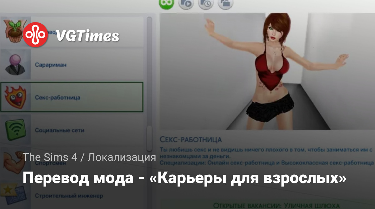Этот мод полностью переводит на русский язык модификацию — Карьеры для взрослых.