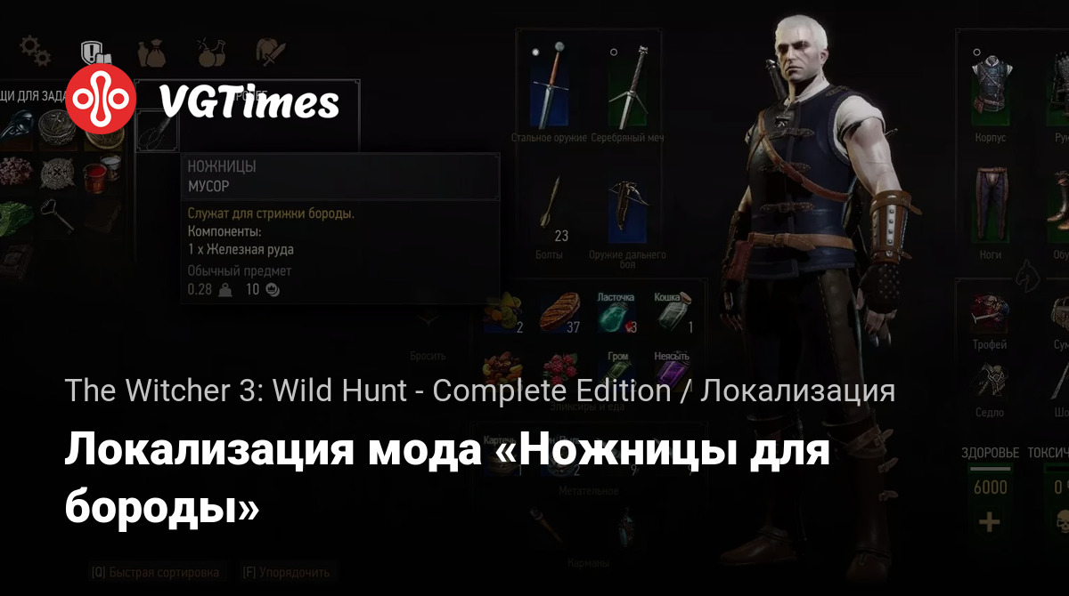 Этот мод полностью переводит на русский язык модификацию, которая позволяет стричь бороду — Ножницы для бороды. Для установки перекиньте файл ru.w3strings в папку The Witcher 3/Mods/modBeardTrimming/content.