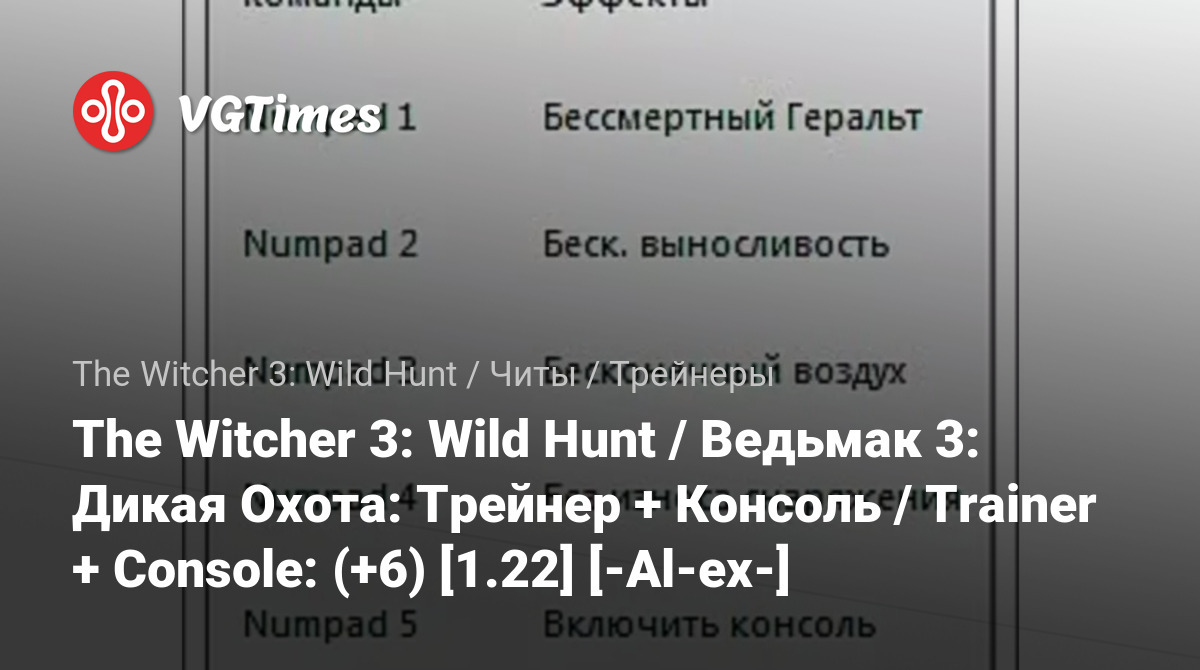 The Witcher 3: Wild Hunt / Ведьмак 3: Дикая Охота: Трейнер + Консоль / Trainer + Console: (+6) [1.22] [-Al-ex-]