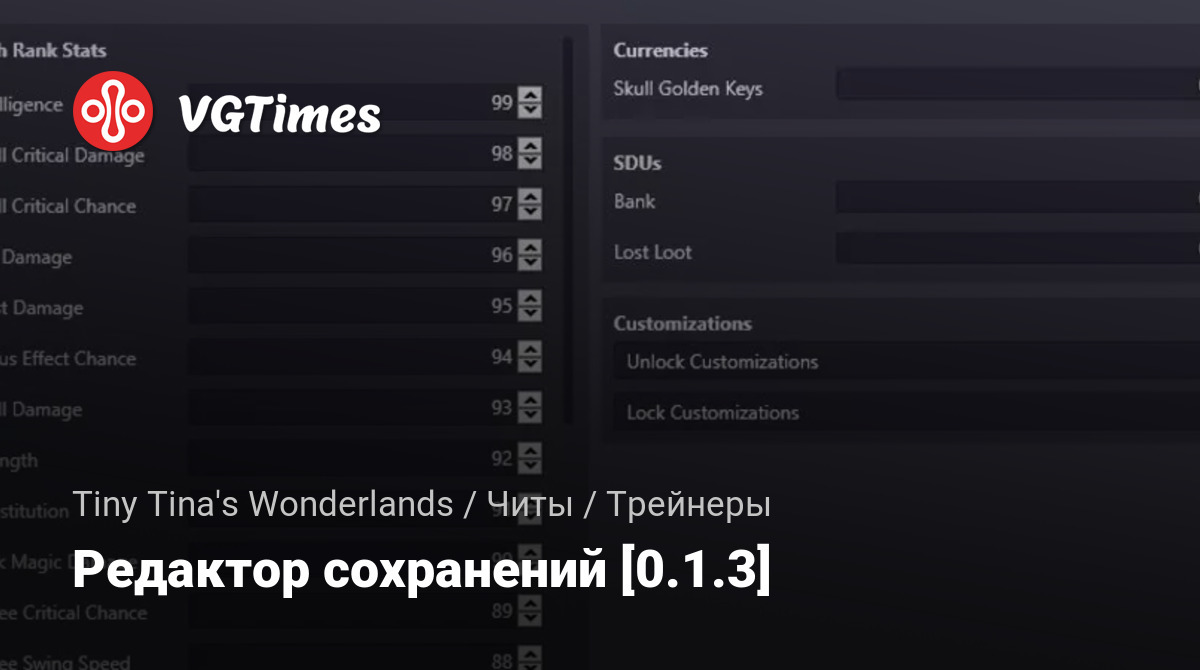 Программа для редактирования файла сохранения персонажа. Позволяет изменять различные параметры персонажа.