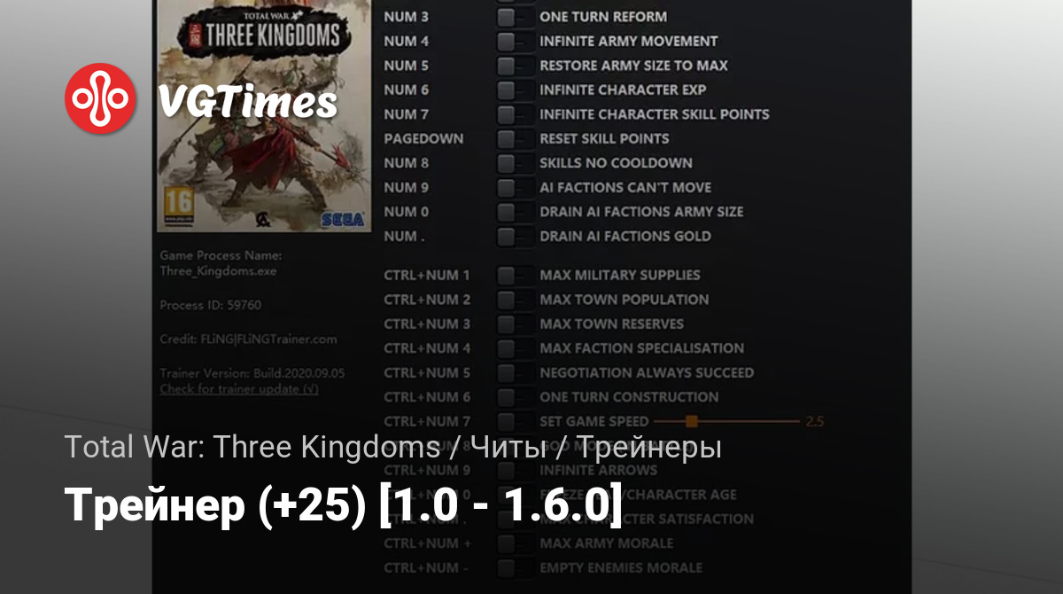 Gry Total War: Three Kingdoms Pliki Trenery Трейнер (+25) [1.0 - 1.6.0]