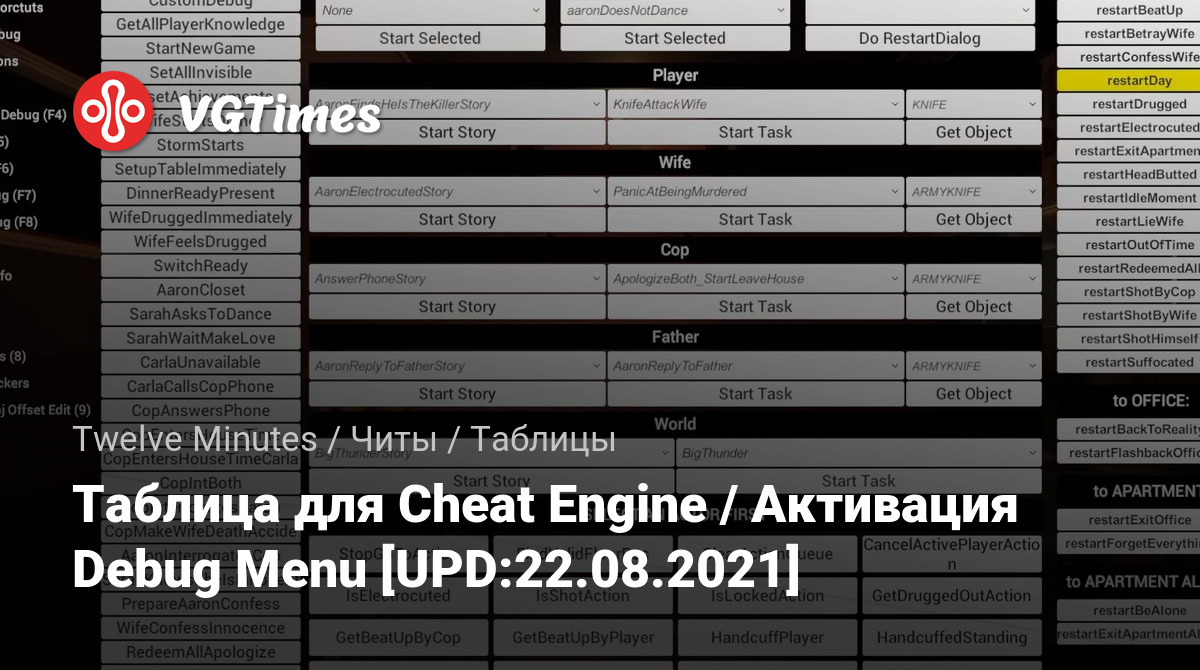 Таблица для Cheat Engine / Активация Debug Menu [UPD:22.08.2021]