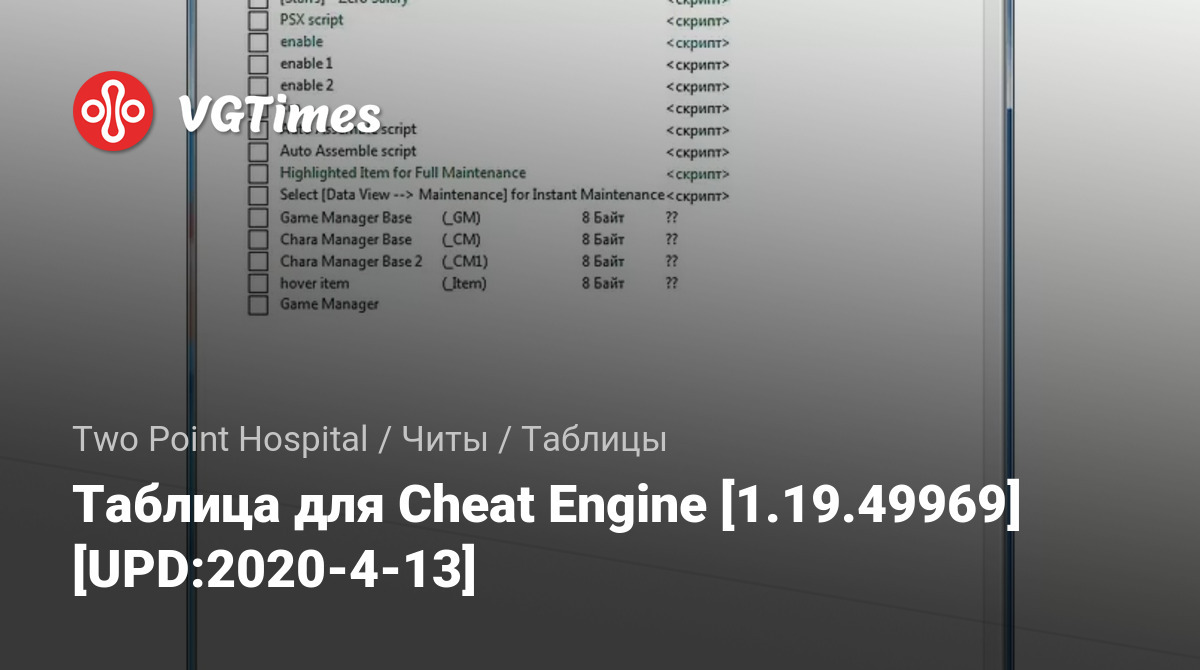 Gry Two Point Hospital Pliki Tabele Таблица для Cheat Engine [1.19.49969] [UPD:2020-4-13]
