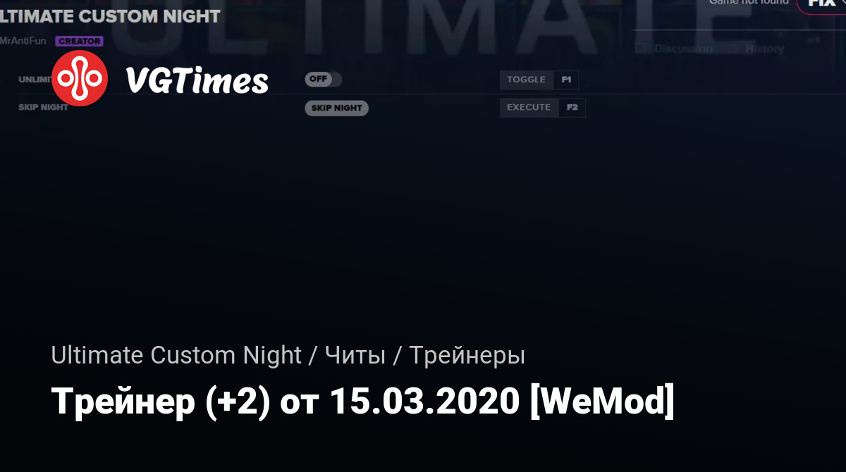 • Ultimate Custom Night — Трейнер (+2) от 15.03.2020 [WeMod]
