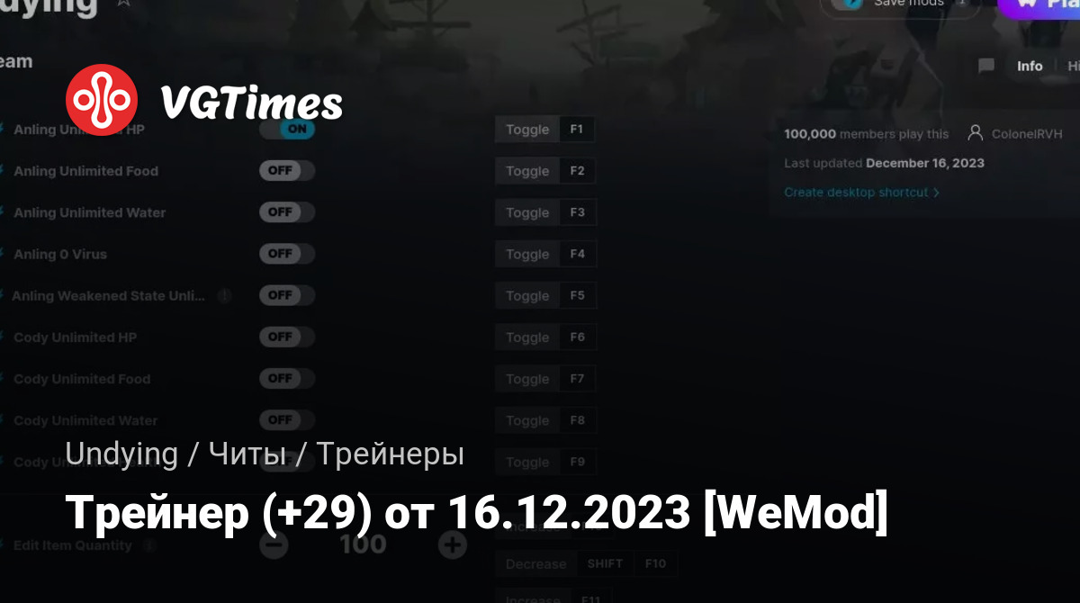 Трейнер (+29) от 16.12.2023 [WeMod]