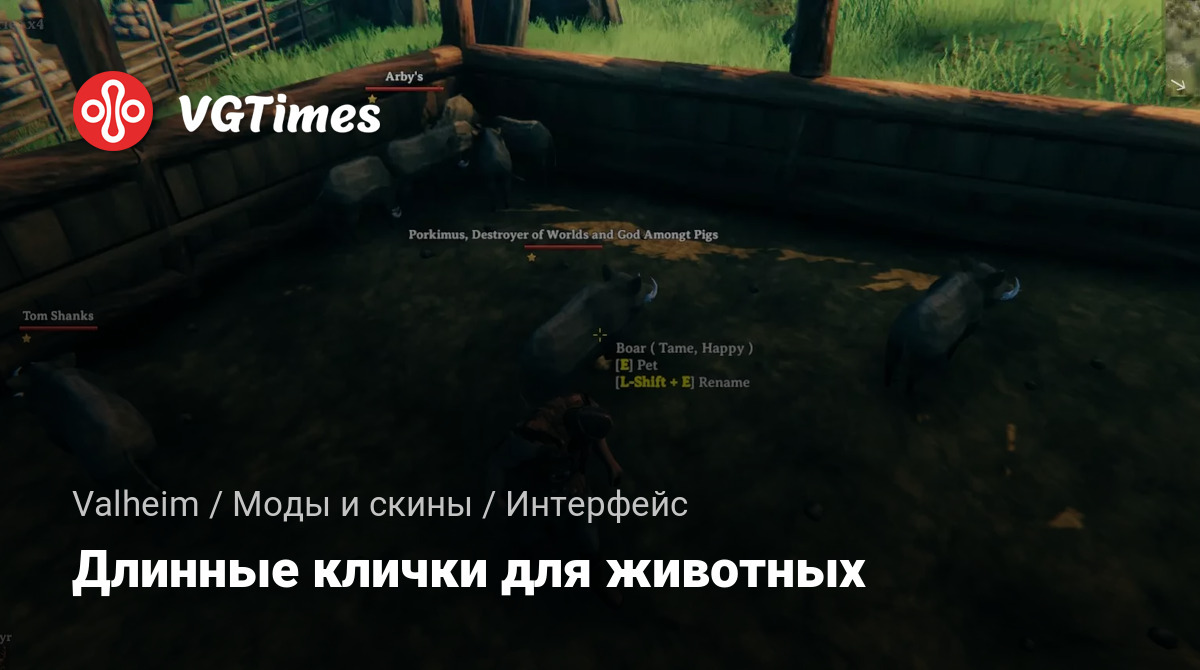 Простое расширение лимита символов для имен домашних животных. Увеличивает лимит до 255 для именования прирученных питомцев. Для установки распакуйте PetNameExtender.dll в папку BepinEx / plugins в локальных файлах Valheim.