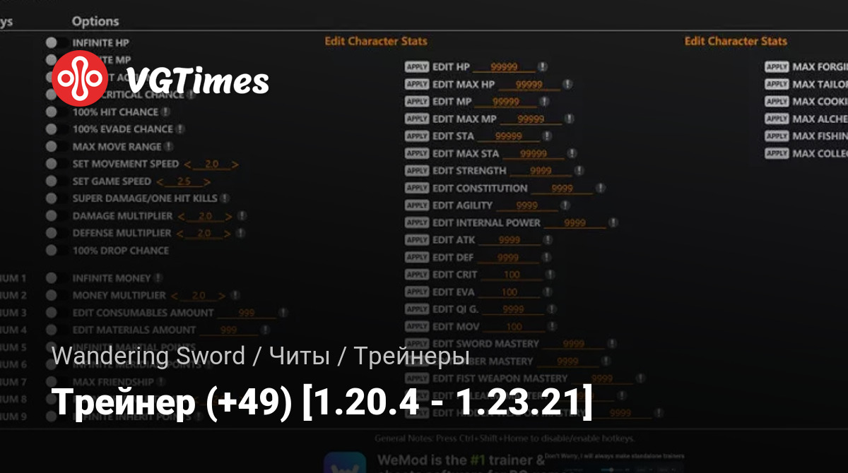 - Edit Sword Mastery — редактировать мастерство владения мечом;