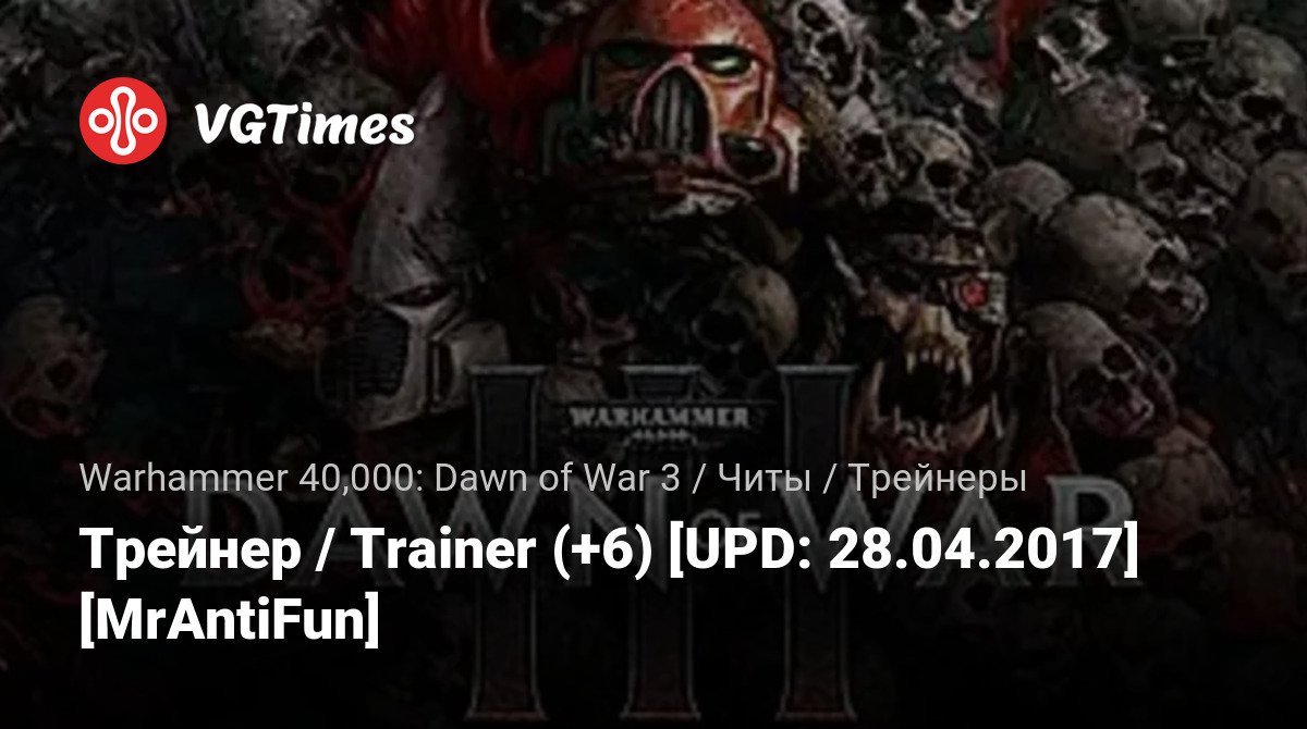 Gry Warhammer 40,000: Dawn of War 3 Pliki Trenery Трейнер / Trainer (+6) [UPD: 28.04.2017] [MrAntiFun]