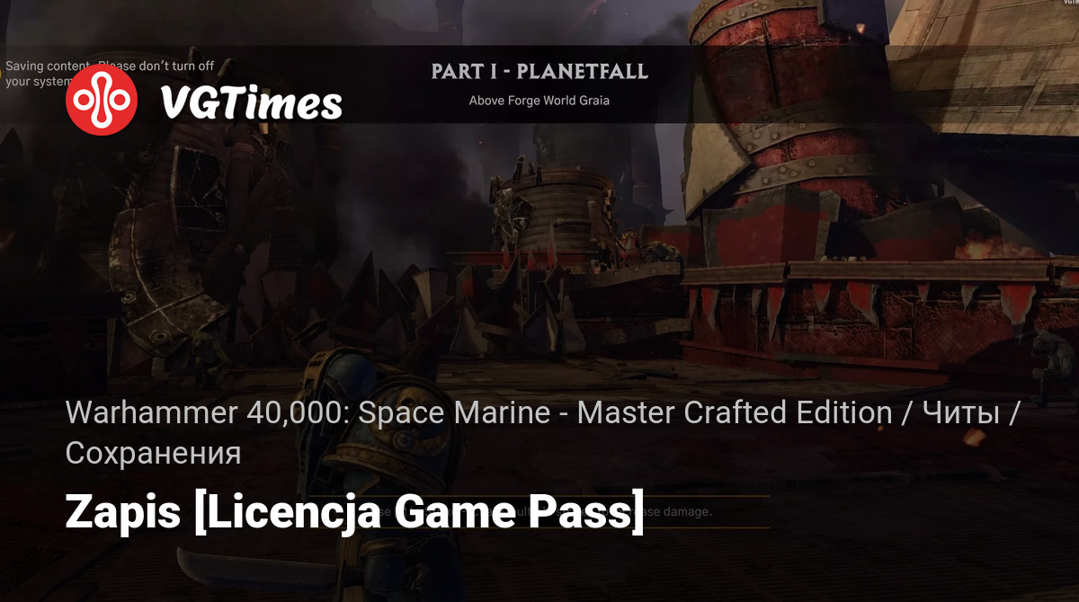 Gry Warhammer 40,000: Space Marine - Master Crafted Edition Pliki Zapisane Zapis [Licencja Game Pass]