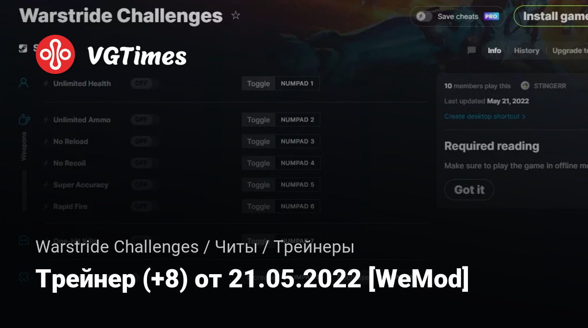 Для использования трейнера необходима установка системы WeMod (требуется онлайн подключение).