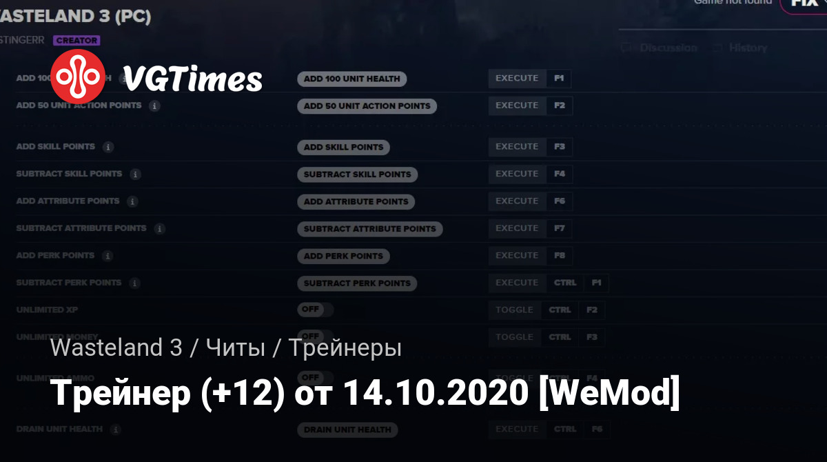 • Wasteland 3 — Трейнер (+12) от 14.10.2020 [WeMod]